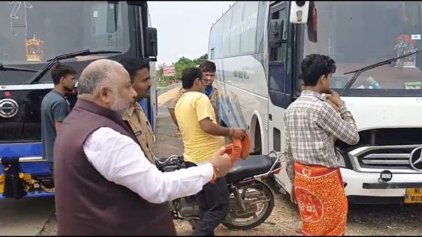 मौके पर गैर राज्यों के वाहन बड़ी संख्या में खड़े थे। परिवहन मंत्री ने कहा यही तो दुर्घटना का कारण है।