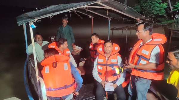 जिलाधिकारी गौरांग राठी और पुलिस अधीक्षक दीपक भूकर बाढ़ प्रभावित क्षेत्र पहुंचे