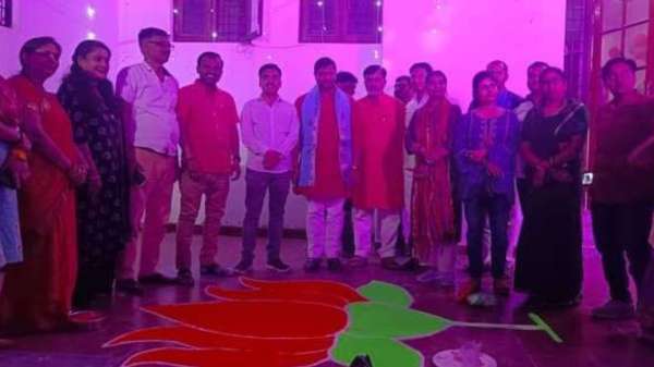 बीजेपी कार्यालय में बनाया गया कमल का फूल