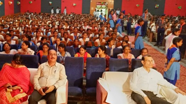 निराला प्रेक्षागृह में नन्हे मुन्ने बाल कलाकारों के प्रदर्शन को देखती भीड़