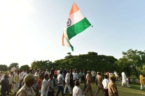 राजधानी लखनऊ में उत्साह का साथ फहराया गया तिरंगा।