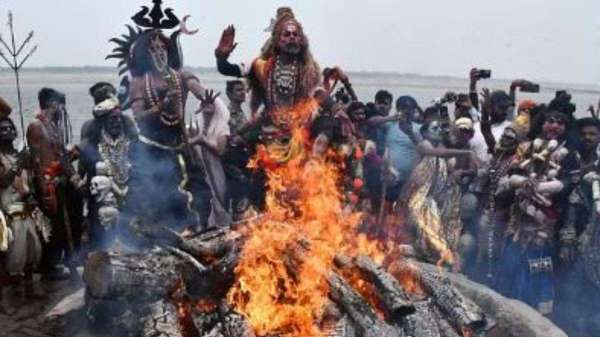 मसाने की होली में शामिल भगवान शंकर के रूप में सजे कलाकार।