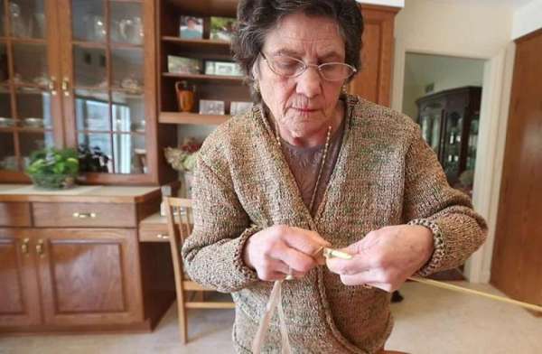 75 वर्षीय महिला ने 310 प्लास्टिक बैग से एक खूबसूरत जैकेट और स्कर्ट तैयार की है।