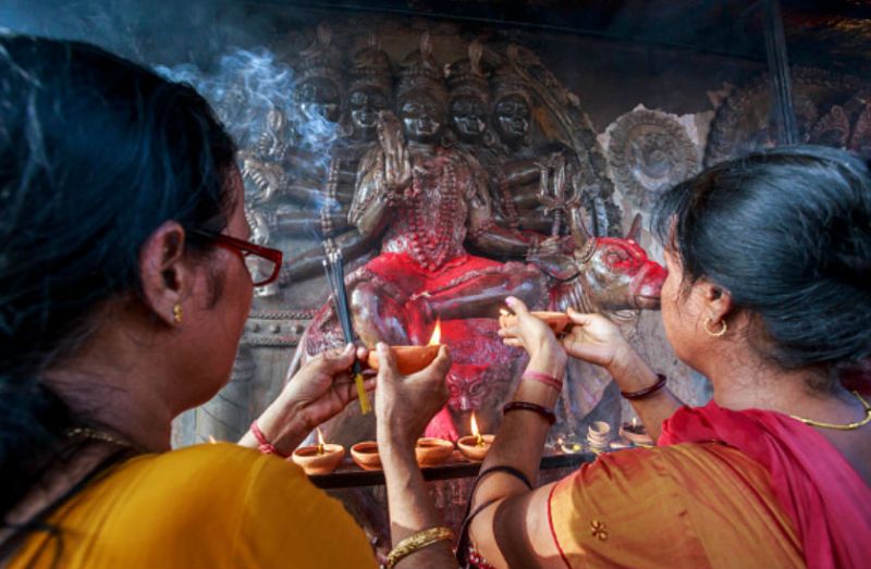 इस मंदिर में देवी दुर्गा या मां अम्बे की कोई मूर्ति या चित्र आपको दिखाई नहीं देगा। बल्कि मंदिर में एक कुंड बना है जो कि हमेशा फूलों से ढका रहता है। इस कुंड से हमेशा ही जल निकलते रहता है। चमत्कारों से भरे इस मंदिर में देवी की योनि की पूजा की जाती है। यहां माता के योनि भाग होने के कारण वो रजस्वला भी होती हैं।