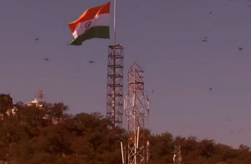 भगवा के साथ शान लहराता है तिरंगा झंडा