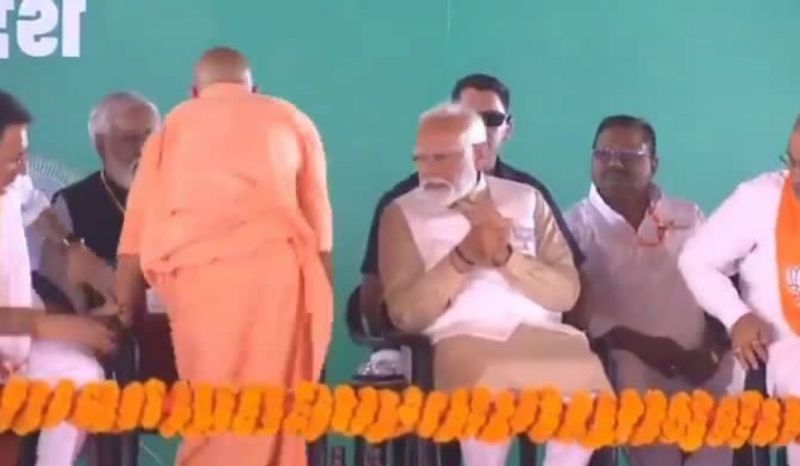 इस दौरान पदाधिकारियों और कार्यकर्ताओं से भरे मंच पर जगह नहीं होने के चलते सीएम योगी पीछे से पोडियम की तरफ जाने लगे तो प्रधानमंत्री मोदी ने उन्हे अपने सामने से जाने लिए इशारा किया। इसके बाद सीएम योगी प्रधानमंत्री के आगे से भाषण देने के लिए निकले।