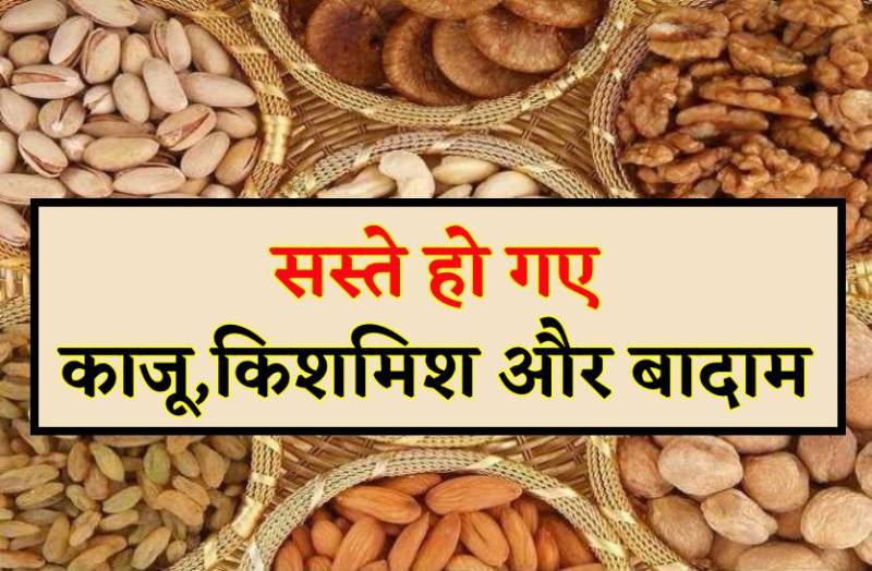 काजू डब्ल्यू 240 नंबर 775 से 810, काजू डब्ल्यू 320 नंबर 685 से 720, काजू डब्ल्यू वन 665 से 675, काजू एस डब्ल्यू 300- 655 से 665, एसएस डब्ल्यू 650, काजू जेएच 650 से 685, टुकड़ी 650 से 675, बादाम इंडिपेंडेट 530 से 560, अमरीकन 625 से 645, मोटा दाना 850, टांच 500 से 525, खारक 125 से 135, बेस्ट 190 से 210, एक्सट्रा बेस्ट 225 से 250, किशमिश कंधारी 375 से 475, बेस्ट 450, इंडियन 190 से 200, बेस्ट 260, चारोली बेस्ट 1200 से 1250, मनुक्का बेस्ट 750, एक्सट्रा बेस्ट 875, अंजीर 675 से 875, बेस्ट 1100 से 1250 रुपए।