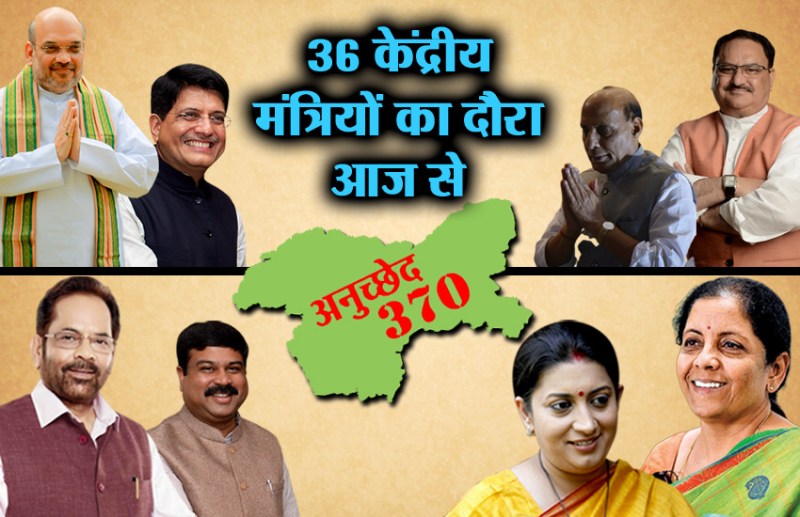 जम्मू-कश्मीर के मुख्य सचिव बीवीआर सुब्रह्मण्यम ने जम्मू में समीक्षा बैठक के बाद कहा कि लोगों तक पहुंचने के लिए बड़े अभियान के तहत 36 केंद्रीय मंत्री शनिवार से जम्मू-कश्मीर की 60 जगहों का दौरा करेंगे। उधर, सूत्रों के हवाले से एक खबर में कहा गया है कि पीएम नरेंद्र मोदी ने जम्मू-कश्मीर के दौरे पर जाने वाले मंत्रियों से शुक्रवार को कहा था कि वे वहां के शहरी इलाकों में ही नहीं बल्कि घाटी के गांवों में जाकर भी लोगों के बीच विकास का संदेश फैलाएं।