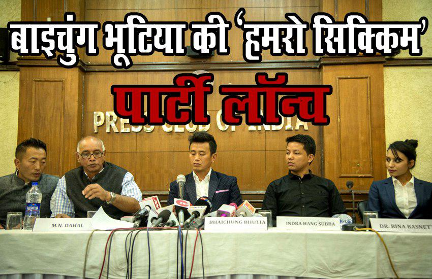 नई दिल्ली : भारतीय फुटबॉल टीम के पूर्व कप्तान और दिग्गज फुटबॉलर बाइचुंग भूटिया एक बार फिर से राजनीति के मैदान में गोल करने के लिए तैयार हैं। गुरुवार को बाइचुंग भूटिया ने अपनी नई पार्टी का ऐलान कर दिया। भूटिया की नई पार्टी का नाम है हमरो सिक्किम पार्टी। दिल्ली में प्रेस क्लब ऑफ इंडिया में नई पार्टी की घोषणा के दौरान पूर्व भारतीय फुटबॉल खिलाड़ी दिलीप राय और सिक्किम से पहले IAS अधिकारी मेघा निधी दहल भी मौजूद थे। 41 साल के बाइचुंग भूटिया ने प्रेस कॉन्फ्रेंस के दौरान कहा कि ये सिक्किम के लोगों की पार्टी है मैं इसका अध्यक्ष नहीं हूं मैं सिर्फ सिक्किम के लोगो के लिए आया हूं। इस बार उनका पूरा ध्यान अपने गृह राज्य सिक्किम पर रहेगा