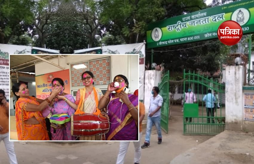 नई दिल्ली। बिहार विधानसभा चुनाव ( bihar assembly election ) को लेकर मंगलवार को चल रही मतगणना के पहले दौर में राजग को मिली बढ़त के बाद भारतीय जनता पार्टी ( BJP ) और जनता दल ( JDU ) कार्यालय में जहां जश्न का माहौल बनने लगा है, वहीं राजद कार्यालय ( RJD Office ) में दो-चार कार्यकर्ता ही नजर आ रहे हैं। प्रारंभिक तौर पर मिले रूझानों के बाद BJP और JDU Office में कार्यकर्ता पहुंचने लगे और कार्यकर्ताओं की खुशी का ठिकाना नहीं है। नतीजे आने से पहले ही भाजपा और जदयू के कार्यालयों में कार्यकर्ताओं का आना शुरू हो गया है। लोग को ढोलक, बैंड-बाजे के साथ खुशियां मना रहे हैं। इस दौरान कार्यकर्ता शंख बजाकर शंखनाद भी कर रहे हैं।