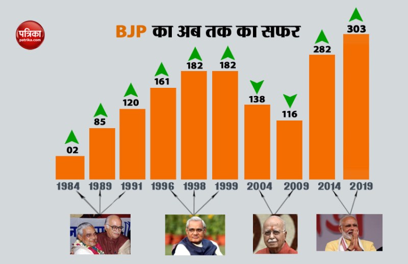 1980 में बीजेपी की स्थापना हुई थी और पहली बार वह 1984 का चुनाव लड़ी थी। इस चुनाव में पार्टी ने दो सीटों हनामकोड़ा (आंध्रप्रदेश) और मेहसाणा( गुजरात) पर जीत दर्ज की थी। वहीं, 1989 के लोकसभा चुनाव में भारतीय जनता पार्टी ने 85 सीटों पर जीत हासिल किया था। लेकिन, भाजपा का असली खेल शुरू हुआ 1991 से जब पार्टी ने उत्तर प्रदेश को टारगेट करते हुए राम मंदिर को अपना मुद्दा बनाया।