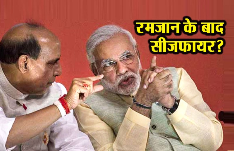 नई दिल्ली। जम्मू-कश्मीर में रमजान के चलते लगे सीजफायर पर आज बड़ा फैसला होना है। रमजान का महीना खत्म होने जा रहा है। अब तक कयास लगाए जा रहे थे कि सरकार सीजफायर के सकारात्मक परिणाम को देखते हुए इसकी अवधि में विस्तार कर सकती है। लेकिन एक पत्रकार की हत्या, अमरनाथ यात्रा पर आतंकी साये और सेना की चेतावनी के चलते अब फैसला बदल सकता है। इसी संदर्भ में शुक्रवार की शाम को प्रधानमंत्री नरेंद्र मोदी और गृहमंत्री राजनाथ सिंह के बीच एक बैठक होनी है। इस बैठक में सीजफायर को लेकर अंतिम फैसला लिया जा सकता है।