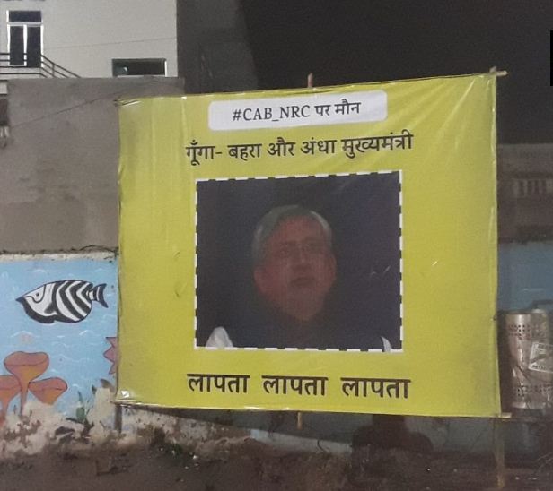 एक पोस्टर में नीतीश की तस्वीर के ठीक ऊपर लापता लिखा गया है और नीचे संदेश लिखा गया है कि ध्यान से देखिए इस चेहरे को, कई दिनों से ना दिखाई दिया ना सुनाई दिया। ढूंढने वाले का बिहार सदा आभारी रहेगा।