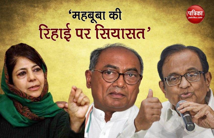 नई दिल्ली। जम्मू-कश्मीर ( Jammu Kashmir ) की सियासत एक बार फिर गरमा गई है। पीडीपी (PDP) की मुखिया महबूबा मुफ्ती ( mehbooba Mufti ) करीब चौदह महीने बाद रिहा हुई हैं। रिहाई के तुरंत बाद मुफ्ती ने एक ऑडियो संदेश जारी करते हुए घाटी के लिए संघर्ष का ऐलान किया। वहीं, महबूबा मुफ्ती की रिहाई पर पूर्व गृह मंत्री और कांग्रेस के वरिष्ठ नेता पी चिदंबरम ( P Chidambaram ) ने भी प्रतिक्रिया दी है। उनके अलावा कांग्रेस नेता दिग्विजय सिंह ( Digvijay Singh ) ने महबूबा की रिहाई का स्वागत किया है।