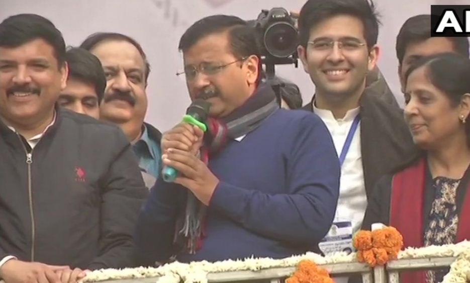 दिल्ली की जनता और आप कार्यकर्ताओं को धन्यवाद करते अरविंद केजरीवाल