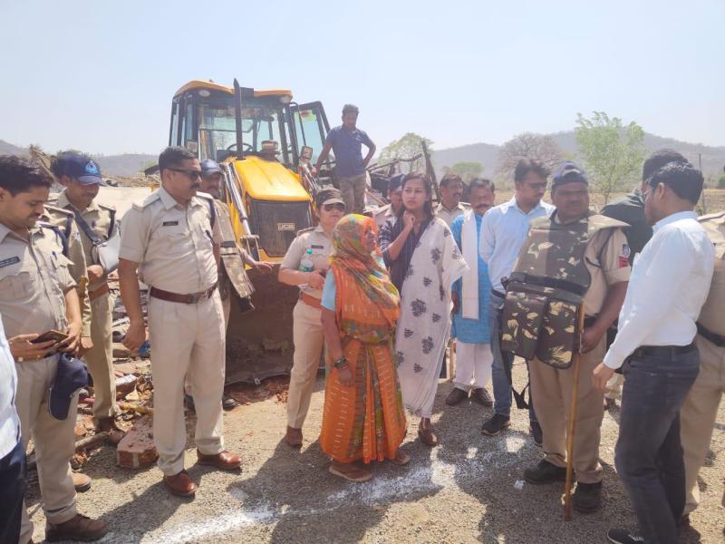 देवास. गुंडा अभियान के तहत पुलिस-प्रशासन की टीम ने बुधवार को इंदौर-बैतूल हाइवे पर कालापाठा में बड़ी कार्रवाई की। यहां भू माफियाओं द्वारा आदिवासी परिवारों की जमीन पर किए गए कब्जे को ढहाया गया। करीब 10 एकड़ जमीन से अतिक्रमण हटवाया गया जो दो करोड़ रुपए कीमती है। मौके पर ही जमीन को उनके मालिकों का सम्मान करके सौंपा गया।