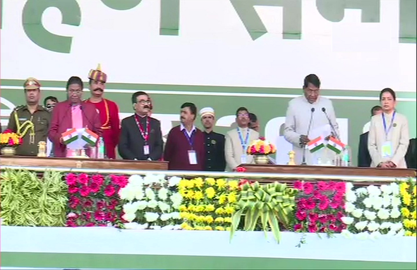 रांची के मोराबादी मैदान में आयोजित शपथ ग्रहण समारोह ( Oath taking ceremony ) में अपराह्न करीब दो बजे राज्यपाल द्रोपदी मुर्मू ने उनको राज्य के 11वें मुख्यमंत्री की शपथ दिलाई।