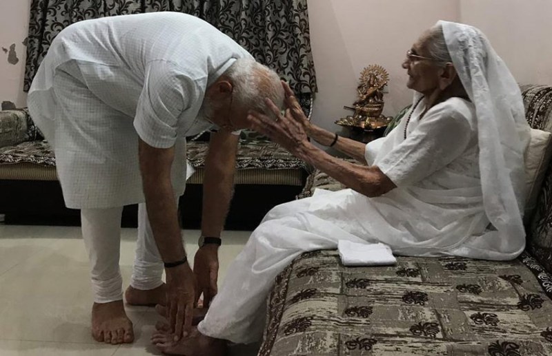 नरेंद्र मोदी अपनी मां हीराबेन से मिलने के लिए उनके घर पहुंचे हैं। मोदी ने मां पैर छूकर आशीर्वाद लिया। कुछ भी बड़ा करने और किसी अहम मौके पर जाने से पहले मोदी अक्सर मां से मुलाकात करने उनके पास जाते रहे हैं।