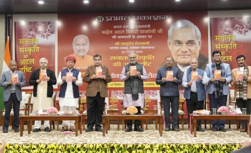 राजस्थान विधानसभा अध्यक्ष वासुदेव देवनानी ने कहा कि यह पुस्तक वाजपेयी के जीवन, विचार और कृतित्व को सनातन संस्कृति के मूल्यों के आलोक में समझने का प्रयास है। एक प्रचारक से प्रधानमंत्री तक की उनकी यात्रा इस बात का प्रमाण है कि सनातन संस्कृति के मूल्य व्यक्ति को राष्ट्रसेवा के सर्वोच्च शिखर तक पहुंचा सकते हैं। देवनानी ने कहा कि शिक्षा मंत्री के रूप में उन्होंने पाठ्यक्रमों में भारतीय दृष्टिकोण को सशक्त करने का प्रयास किया। इतिहास लेखन में दृष्टि परिवर्तन की आवश्यकता के कारण ही पाठ्यपुस्तकों में अकबर महान के स्थान पर महाराणा प्रताप महान को स्थापित किया गया, क्योंकि महाराणा प्रताप भारतीय स्वाभिमान, त्याग और राष्ट्रधर्म के प्रतीक हैं। इस वैचारिक साहस की उन्हें संघ के संस्कारों से प्रेरणा मिली। कार्यक्रम को नेशनल बुक ट्रस्ट के अध्यक्ष मिलिंद मराठे ने भी संबोधित किया। कार्यक्रम में केन्द्रीय राज्य मंत्री भागीरथ चौधरी भी मौजूद रहे। राजस्थान से बड़ी संख्या में लोग इस कार्यक्रम में सहभागिता करने यहां आए।