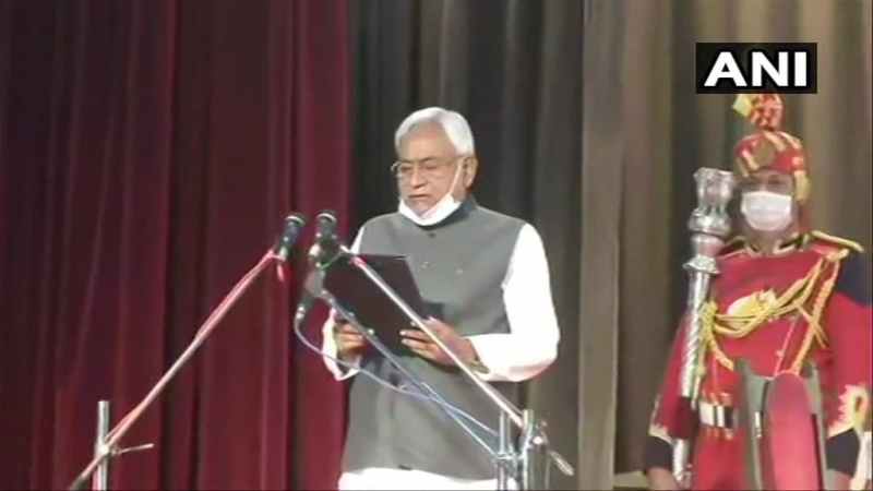 बिहार विधानसभा चुनाव में बहुमत का आंकड़ा हासिल करने के बाद एनडीए विधायक दल के नेता नीतीश कुमार सीएम पद की सातवीं बार शपथ ली। बिहार के राज्यपाल फागू चौहान नीतीश कुमार को पद और गोपनीयता की शपथ दिलाई। बीजेपी की ओर से पार्टी विधायक दल के नेता तार किशोर प्रसाद और उपनेता मंजू देवी डिप्टी सीएम पद का शपथ ली। अब तक के लेटेस्ट अपडेट्स के लिए Patrika.Com के साथ...