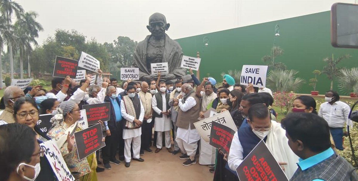 हालांकि विपक्ष का कहना है कि जबतक सांसदों का निलंबन रद्द नहीं कर दिया जाता, तब तक विरोध जारी रहेगा। वहीं सत्ता पक्ष ने सांसदों के निलंबन को सही ठहराते हुए उनकी गलती पर माफी मांगने की बात कही। बता दें कि मानसून सत्र में अनुशासनहीनता के चलते शीतकालीन सत्र में 12 सांसदों को निलंबित किया गया है। इसमें सबसे ज्यादा 6 सांसद कांग्रेस के हैं।
