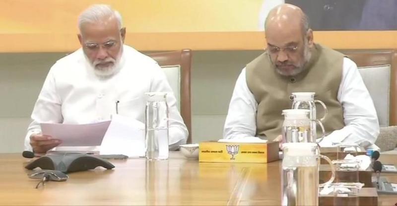 भाजपा मुख्यालय में चुनाव समिति की बैठक में पीएम मोदी और अमित शाह