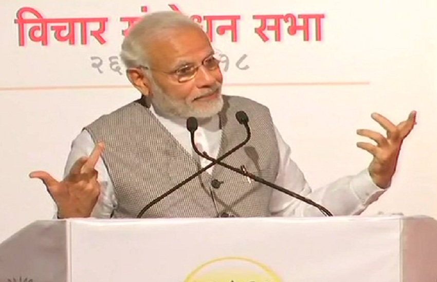 नई दिल्ली। देश में आपातकाल के 43 साल पूरे होने पर भाजपा की ओर से '1975 आपातकाल: लोकतंत्र की अनिवार्यता- विकास मंत्र- लोकतंत्र' नाम से एक कार्यक्रम का आयोजन किया गया। सभा को संबोधित करते हुए प्रधानमंत्री नरेंद्र मोदी ने कांग्रेस सरकार और पूर्व पीएम इंदिरा गांधी को जमकर कोसा। भाषण के आखिरी में पीएम मोदी ने कुछ ऐसा किया जिससे वे सोशल मीडिया के निशाने पर आ गए।