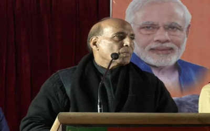रक्षा मंत्री राजनाथ सिंह रैली को संबोधित करते हुए