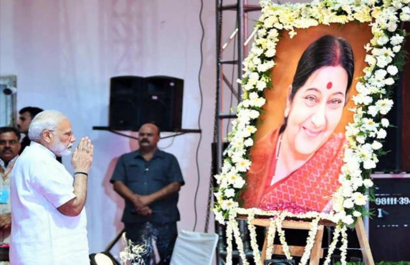 पीएम मोदी ने सुषमा स्वाराज को याद करते हुए कहा 'सुषमा जी का बड़ा आग्रह था कि आप कितने ही अच्छे वक्ता क्यों न हो, आपके विचारों में कितनी ही साध्यता क्यों न हो, पर कुछ फोरम ऐसे होते हैं, जिनकी अपनी मर्यादा होती है, और हमें उसे निभाना पड़ता है।’ सुषमा जी ने मुझे यह पहला सबक सिखाया था।