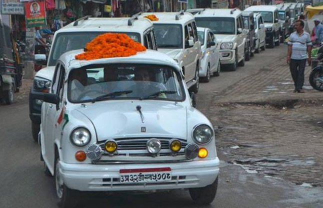 बत्ती लगी गाड़ी में निकले। इतना ही नहीं उनके साथ गाडियों का लंबा काफिला भी था।