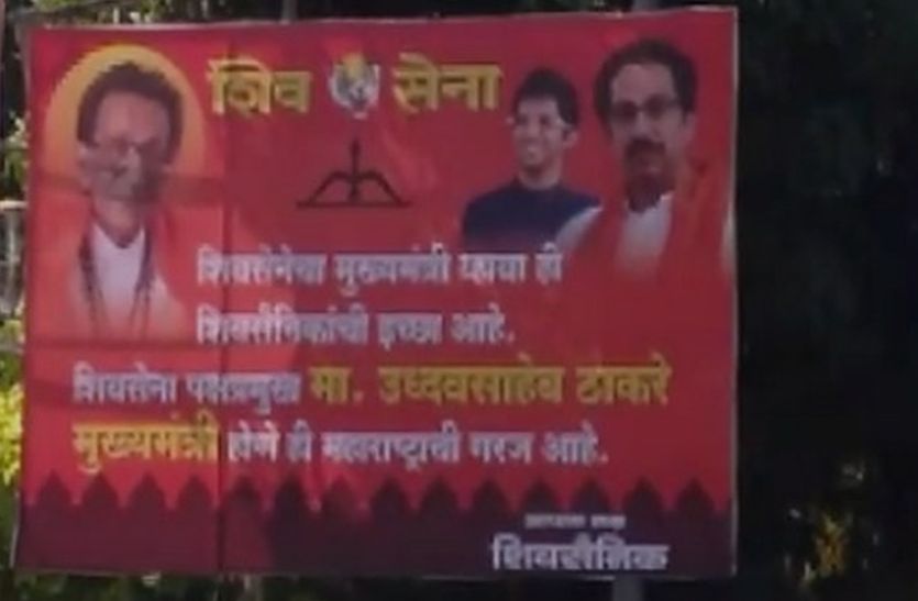 इस बीच लगता है कि शिवसेना ने अपनी स्ट्रेटजी में बदलाव किया है। अभी तक वह शिवसेना की ओर से उद्धव ठाकरे के पुत्र आदित्य ठाकरे को आगे कर रही थी, लेकिन अब ऐसे संकेत मिल रहे हैं कि पार्टी मुख्यमंत्री के नाम के लिए उद्धव ठाकरे का नाम आगे बढ़ा सकती है। अब पूरे मुंबई में मुख्यमंत्री के तौर पर उद्धव ठाकरे की होर्डिंग्स लग गई है। जाहिर है कि पार्टी की तरफ से इशारा मिलने के बाद ही कार्यकर्ताओं ने ऐसा किया होगा। इन होर्डिंग्स में लिखा है कि शिवसैनिकों की इच्छा है कि महाराष्ट्र के मुख्यमंत्री उद्धव ठाकरे ही बनें। इसमें यह भी लिखा है कि यही महाराष्ट्र की जरूरत भी है।