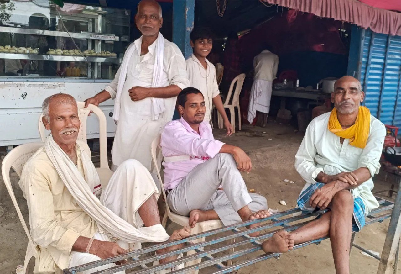 पटना। राघोपुर में चाय की दुकान पर चुनावी चर्चा करते लोग।