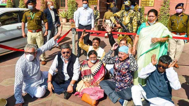 डेरेक ओ ब्रायन, सुखेंदु शेखर रॉय, शांतनु सेन, डोला सेन सहित तृणमूल के 16 सांसद सोमवार सुबह दिल्ली में तृणमूल पार्टी कार्यालय पहुंचे। वहीं गृह मंत्रालय के बाहर प्रदर्शन के दौरान TMC सांसद सुखेंदु शेखर रॉय ने कहा, ‘त्रिपुरा की सरकार को बर्ख़ास्त किया जाना चाहिए।