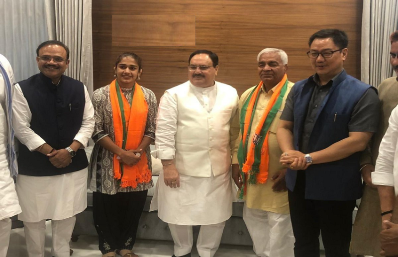 बबीता के साथ उनके पिता महावीर फोगाट भी भाजपा में शामिल हुए। बबीता और महावीर फोगाट ने केंद्रीय मंत्री किरण रजिजू की मौजूदगी में भाजपा की सदस्यता ग्रहण की।