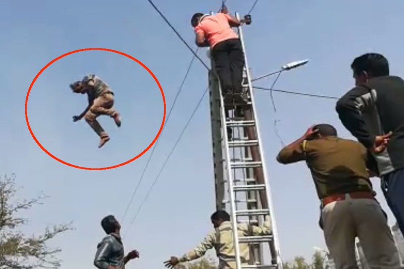उसे नीचे उतारने के लिए विद्युत निगम की गाड़ी और सीढिय़ां मंगवाई गई। वहीं फायर ब्रिगेड भी मौके पर मंगवाई गई। उसे नीचे उतारने के लिए कर्मचारी पोल के पास पहुंचे ही थे कि उसने ऊपर से छलांग लगा दी।
