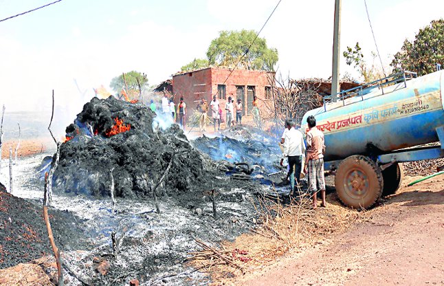 उसके मकान के पास में ही मवेशी बांधने के ढालिए से धुआं निकलने लगा। इस पर आसपास के ग्रामीण आग बुझाने के लिए दौड़ पड़े। सूचना पर पुलिस भी मौके पर पहुंची। आग ने विकराल रूप धारण कर लिया।