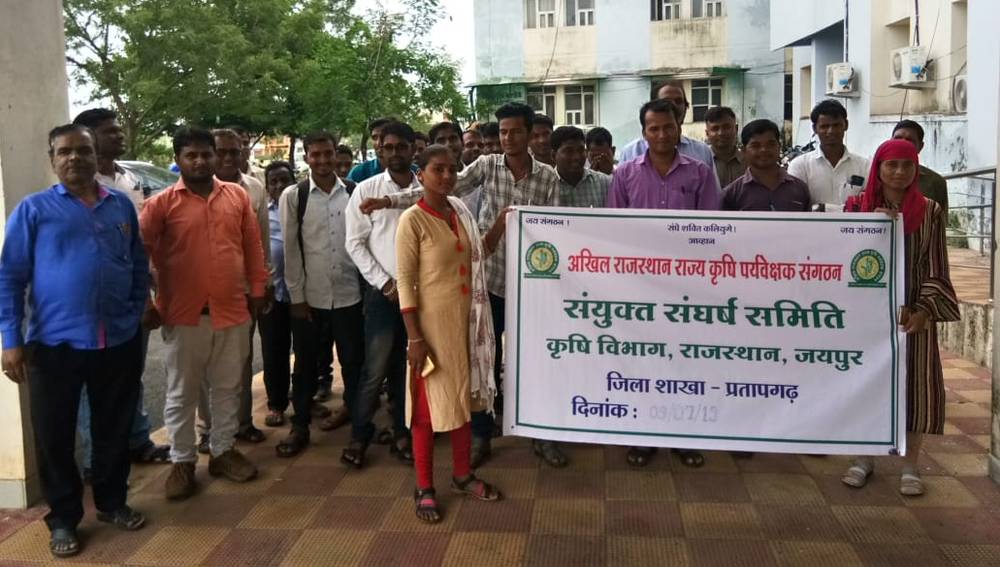 कृषि पर्यवेक्षकों व अधिकारियों ने किया कलक्ट्रेट में प्रदर्शन