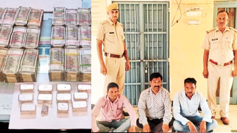 इनके कब्जेशुदा बैगों की तलाशी ली गई। तीनों के कब्जेशुदा बैगों में कुल 99 लाख 87 हजार 380 रुपए व 5 किलो 360 ग्राम चांदी पाई गई। तीनों को उक्त नगद रुपए व चांदी के दस्तावेज के संबंध में जानकारी ली। लेकिन कोई संतोषप्रद जवाब नहीं दे पाए। इस पर पुसिल ने रुपए और चांदी बरामद कर ली।