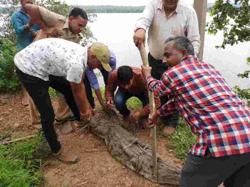 केसुंदा में घुसा मगरमच्छ, वन विभाग ने किया रेस्क्यू