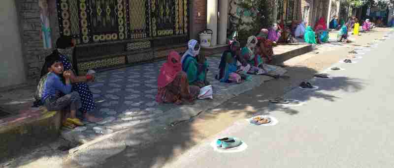 यह कैसी सोशल डिस्टेंसिंग, सोशल डिस्टेंसिंग की जगह चप्पल-जूते रख छांव में बैठे लोग