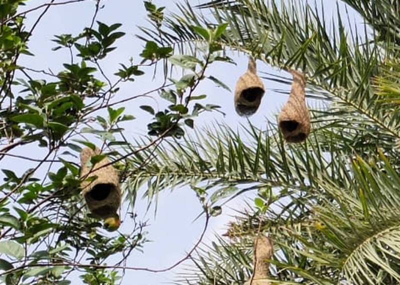 .मानसून के दौरान बया पक्षी बना रहे हैं घोंसलें