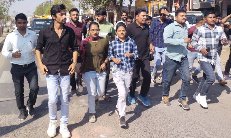 प्रतापगढ़. बहरोड़ विधायक बलजीत यादव मंगलवार को प्रतापगढ़ दौरे पर रहे। इस दौरान उन्होंने अंबेडकर सर्किल से दौड़ लगाई। जो बस स्टैंड से होते हुए जीरो माइल पर पहुंची। यहां कोर्ट परिसर के बाहर भगतसिंह की मूर्ति पर माल्यार्पण किया। जीरो माइल चौराहा पर राणा पूंजा सर्कल पर माल्यार्पण किया। कोर्ट परिसर के बाहर अधिवक्ताओं ने भी विधायक का माल्यार्पण कर स्वागत किया। प्रदेश सरकार की भर्तियों में प्रदेश के युवाओं को आरक्षण देने सहित 14 सूत्रीय मांगों को लेकर राजस्थान के सभी विधानसभा क्षेत्रों में काले कपड़े पहन कर दौड़ लगाने का संकल्प लेकर निकले बहरोड़ के निर्दलीय विधायक बलजीत यादव मंगलवार को प्रतापगढ़ पहुंचे। यहां पर उनका विभिन्न संगठनों की ओर से किया गया। विधायक यादव ने बताया कि आज प्रदेश में युवा बेरोजगार हैए मजदूरों को काम नहीं मिल रहा। किसानों को समय पर बिजली, पानी उपलब्ध नहीं हो रहा। सरकार नौकरियों की घोषणा करती है, भर्तियों की घोषणा करती है लेकिन तय समय पर नौकरियां नहीं मिलती है। लचर परीक्षा प्रणालि के कारण पेपर आउट हो रहे हैं। अपराधियों में कानून का खौफ खत्म हो रहा है। ऐसे में 14 सूत्रीय मांगों को लेकर उन्होंने प्रत्येक विधानसभा क्षेत्र में जाकर आमजन को जागरूक करने का संकल्प लिया है।