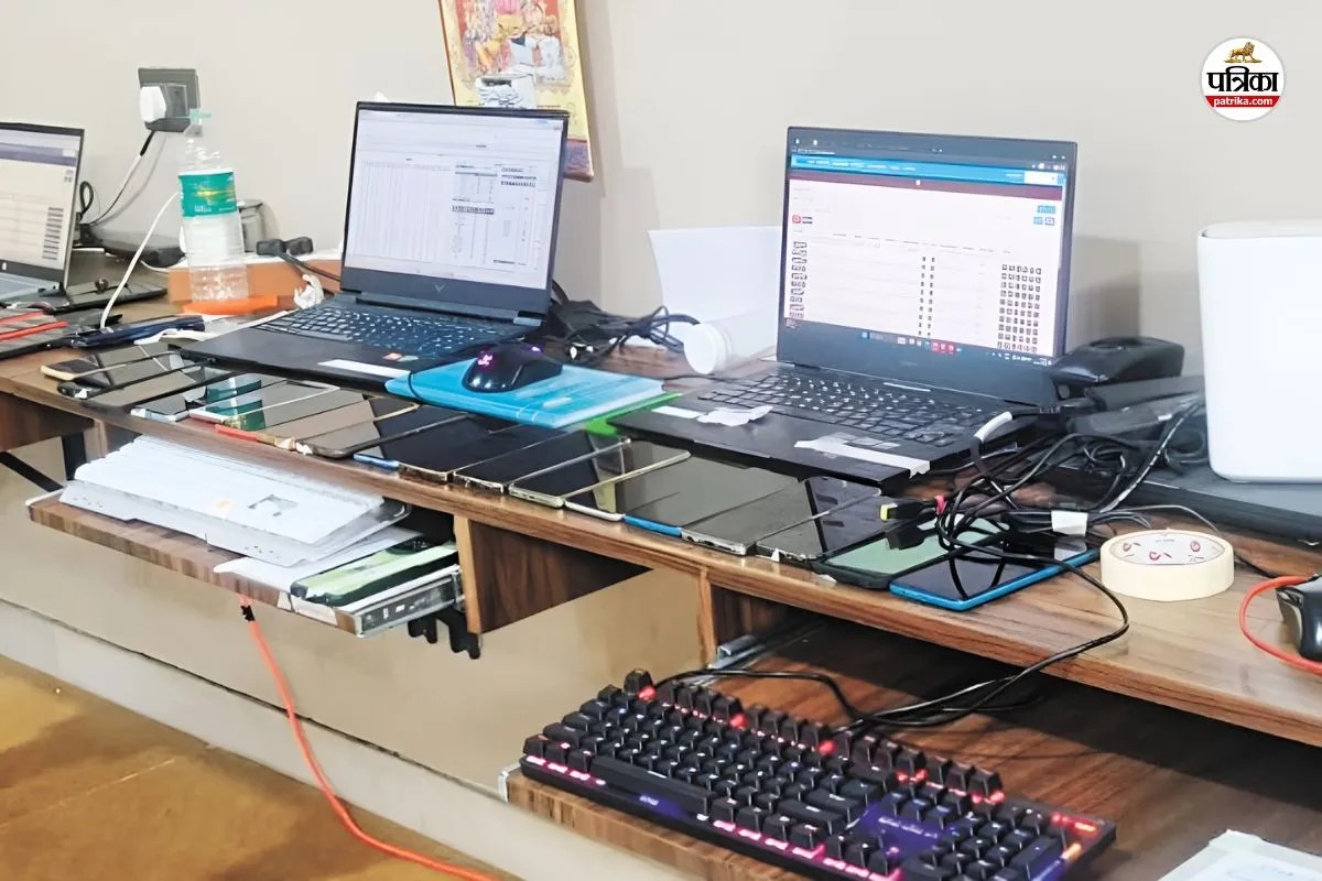 आरोपियों से बरामद लैपटॉप और मोबाइल फोन, पत्रिका फोटो
