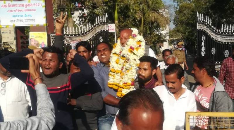 प्रतापगढ़.नगर परिषद चुनाव में भाजपा की रामकन्या गुर्जर को सभापति चुना गया। इसके बाद सोमवार को उप सभापति के चुनाव हुए। जिसमें रोचक परिणाम देखने को मिले। उपसभापति के चुनाव में एक पार्षद ने क्रॉस वोटिंग की। जिसके बाद गोटी डाली गई। जिसमें कांग्रेस के सेवंतीलाल चंडालिया को उपसभापति चुना गया। इसके बाद कांग्रेस कार्यकर्ताओं ने खुशी का इजहार किया। यहां गांधी चौराहे पर आतिशबाजी की गई। उप सभापति के चुनाव में भाजपा के एक पार्षद द्वारा क्रॉस वोटिंग की गई। यहां चुनाव में कांग्रेस के सेवंती चंडालिया को विजय घोषित किया गया। सभापति के चुनाव में एकजुटता दिखाने वाली भाजपा उपसभापति चुनाव में क्रॉस वोटिंग का शिकार हो गई।