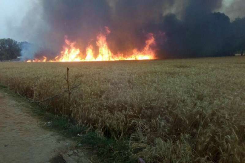 प्रतापगढ़ के रानीगंज थानाक्षेत्र का बाबूपट्टी गांव अमिताभ बच्चन का गांव है। मिली जानकारी के मुताबिक यहां गेहूं के खेत में आग लग गयी। देखते ही देखते इस आग ने 20 बीघे की फसल को अपने लपेटे में ले लिया। आग बढ़ती ही जा रही है। सूचना के बाद भी जब दमकल की गाड़ियां या पुलिस नहीं पहुंची तो स्थानीय लोग खुद ही आग बुझाने के लिये कोशिशों में जुट गए हैं।