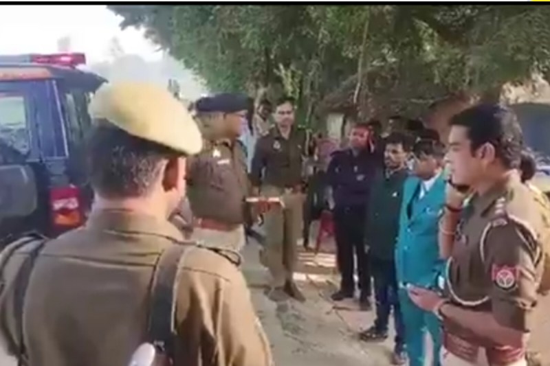 घटनास्थल पर जांच करती पुलिस