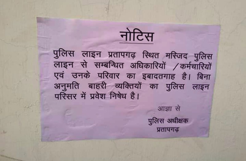 प्रतापगढ़. यूपी के प्रतापगढ़ में पुलिस लाइन्स की मस्जिद में जुमा की नमाज पढ़ने जाने से रोके जाने के बाद पुलिस और अधिवक्ताओं में तीखी झड़प के बाद पुलिस अब और सख्त हो गयी है और आगे किसी भी बाहरी को बिना इजाजत अंदर न आने देने के नियम को और कड़ाई से लागू कर दिया है। रातों रात पुलिस लाइन्स के मेन गेट पर इसके लिये बाकायदा एक नोटिस चस्पा कर दी गयी, जिसमें ये बातें साफ-साफ लिख दी गयी हैं। उधर एक दिन पहले जो अधिवक्ता नमाज पढ़ने के लिये पुलिस से झड़प कर रहे थे वो भी फिलहाल शांत हैं।