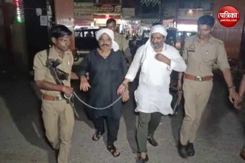 हत्या होने से पहले मेडीकल कराने के लिए जाता अतीक अहमद (दांए) अशरफ (बांए) ।