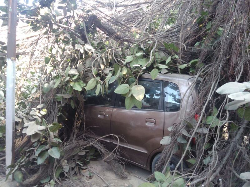 इलाहाबाद. कचहरी कैंपस में एक पुराना बरगद का पेड़ गिरने से भगदड़ मच गई। पेड़ के नीचे खड़े कई वाहन भी इसकी चपेट में आ गये हैं। कार समेत दर्जन भर गाड़ी रिक्शा भी दुर्घटनाग्रसत हो गये हैं।