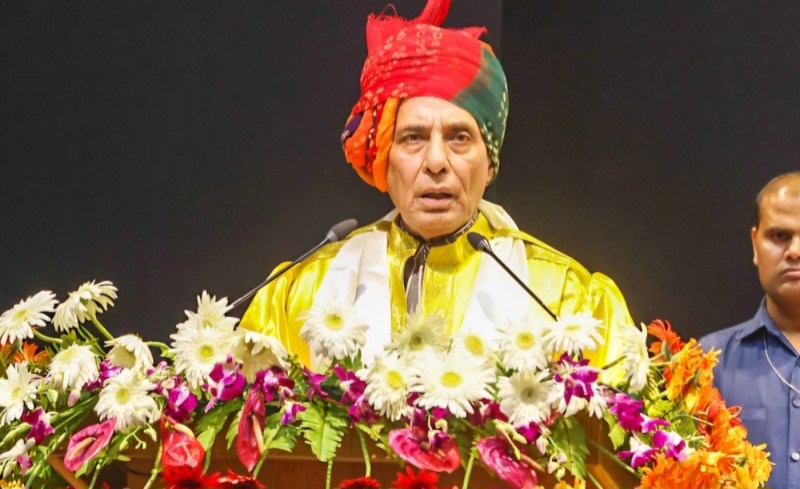 The Union Minister for Defence, Shri Rajnath Singh addressing the gathering at the convocation ceremony of GNS University at Rohtas, in Bihar on June 10, 2023.